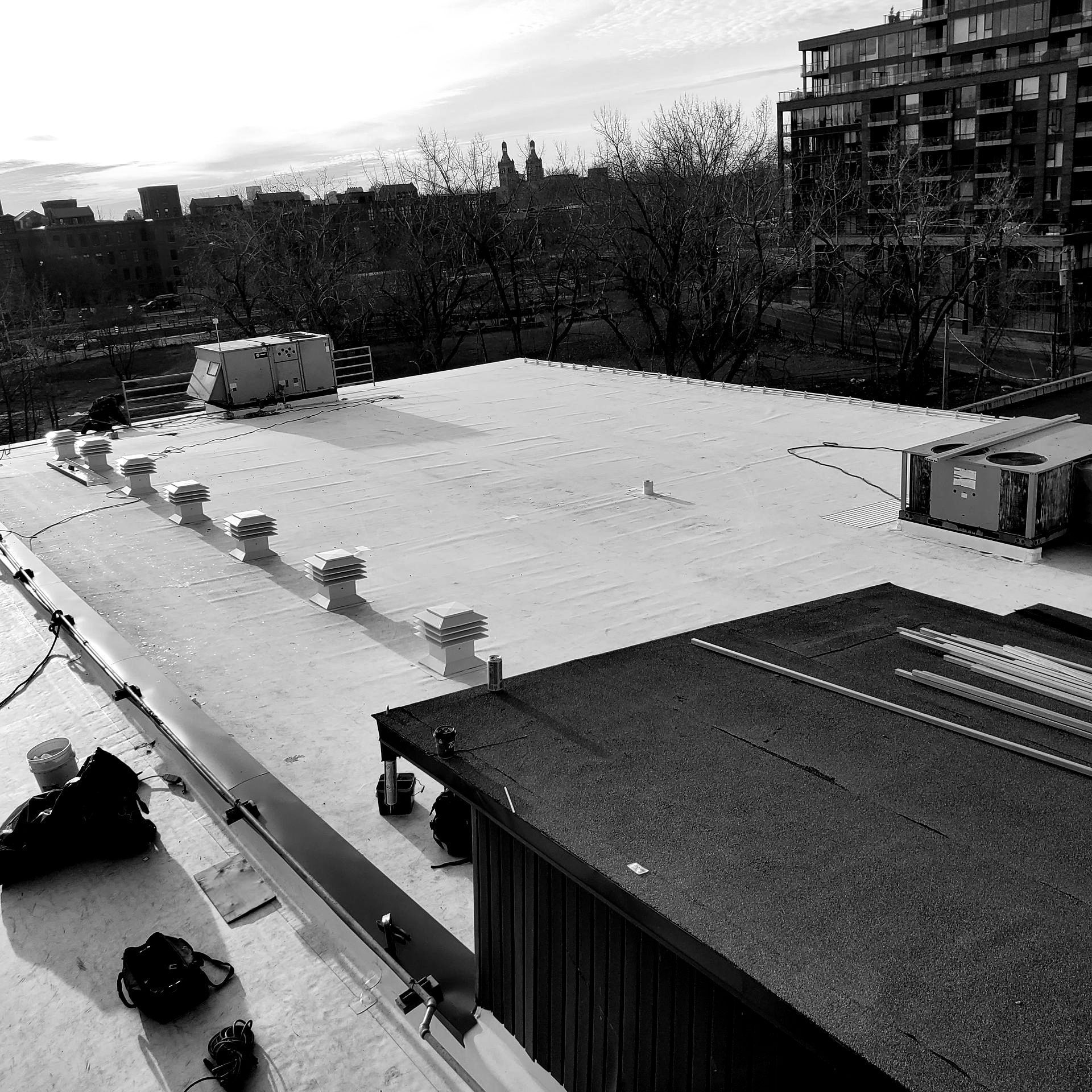 From sloped transitions to edge flashings, we also handle integrated systems that connect commercial roofing with shingle roofing or façade details. You won’t have to juggle contractors—we do it all.